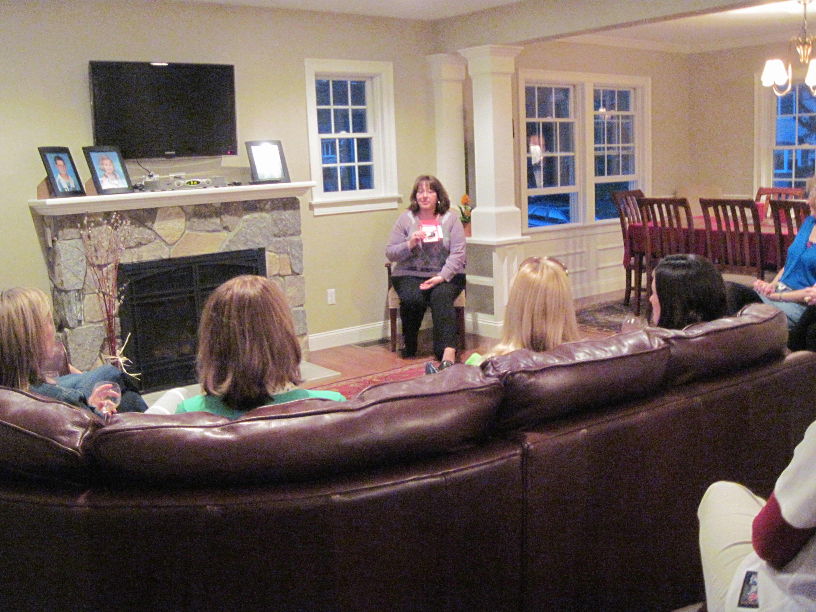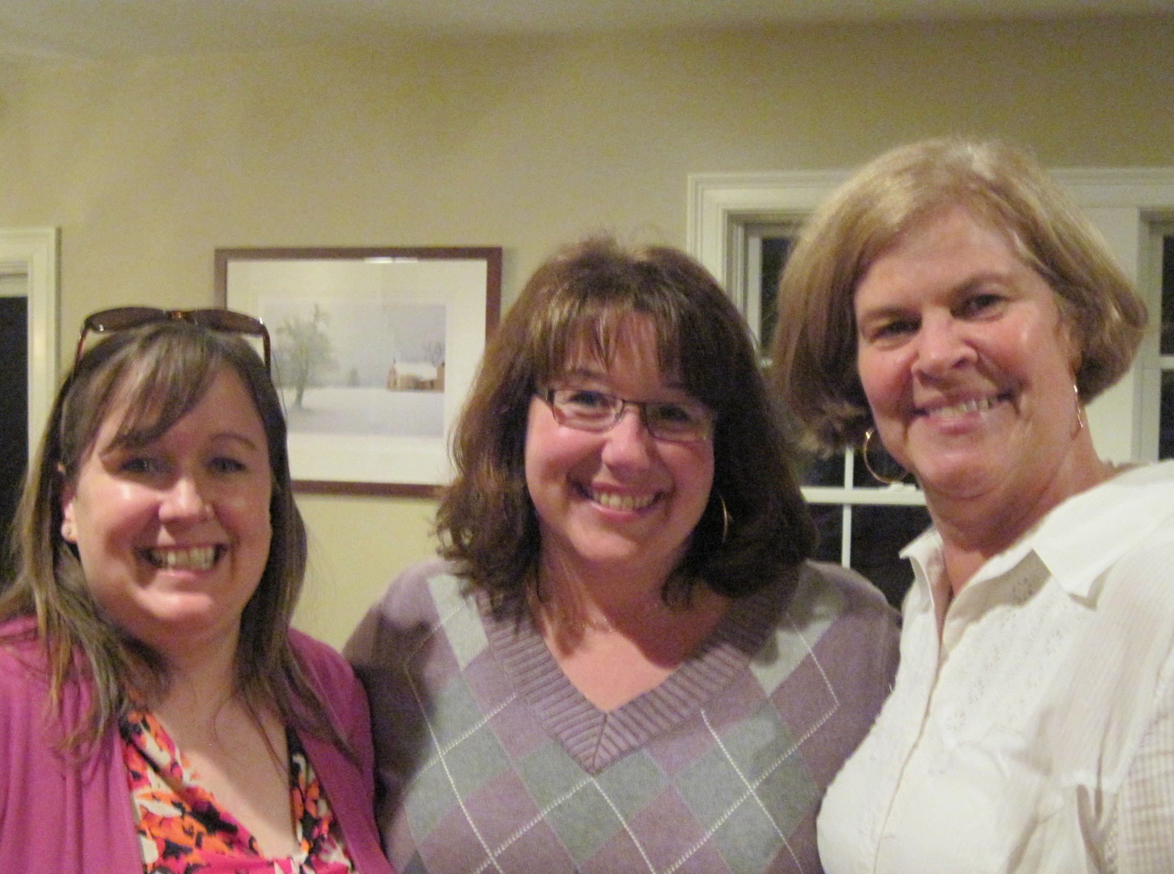 One of the great benefits of being friends is that we also share our families with each other, which includes Sue’s son and daughter-in-law who live just outside of Boston. So, when Kate Schulz was running the “Step Up to the Plate” auction for her kids’ school, she thought it might be fun to offer a “Girls’ Night Out” bookclub. I was honored to be the author they invited to share the evening with.